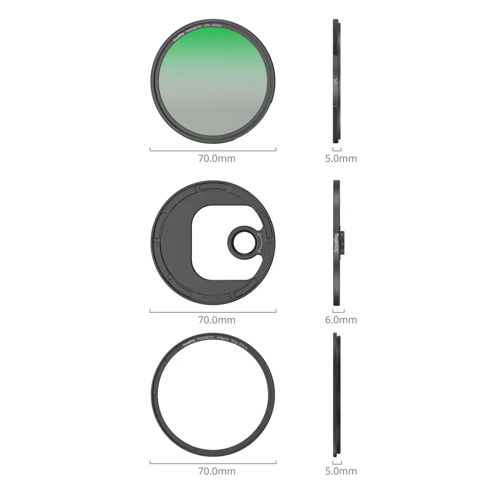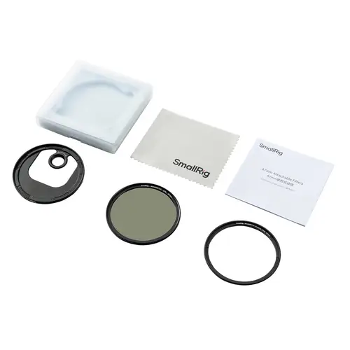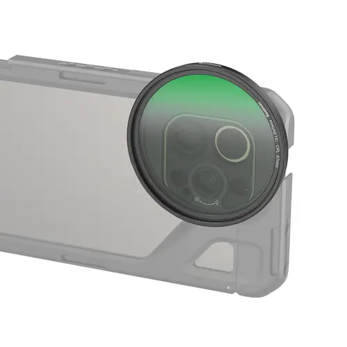 Das Set enthält einen T-Mount-Adapterring für die direkte Integration mit der T-Mount-Rückwand der iPhone-Cages. Mit dem Adapterring mit Gewinde kann der Filter auf ein 67-mm-Kameraobjektiv montiert werden, was eine bequeme magnetische Filterinstallation für Kameraobjektive ermöglicht.