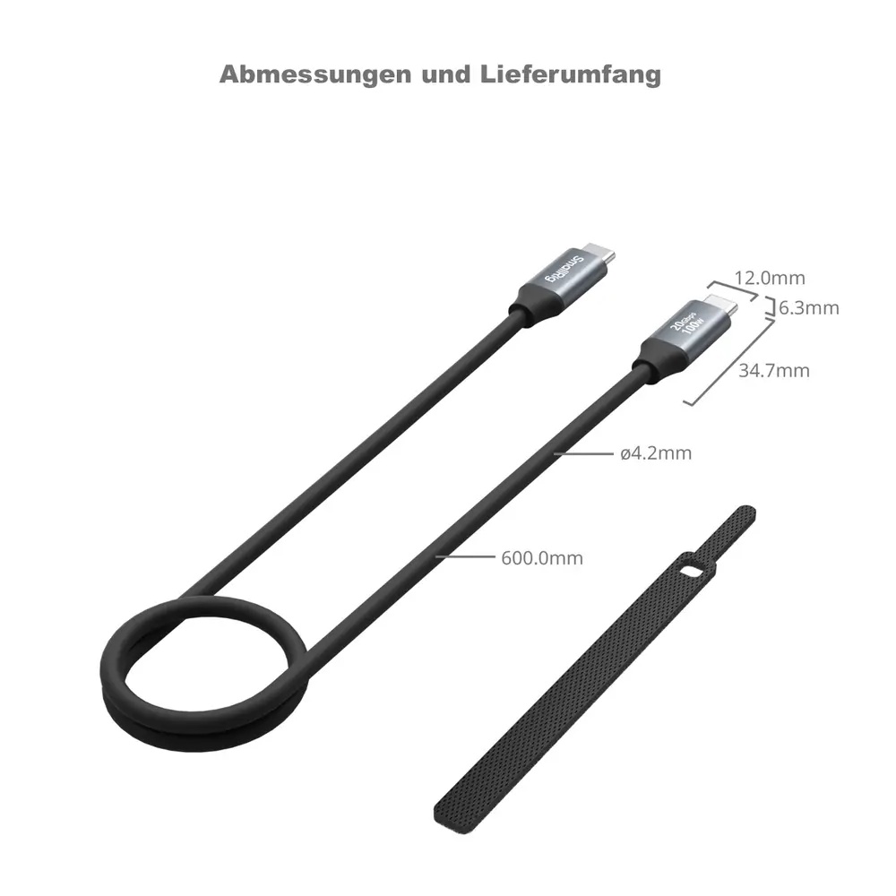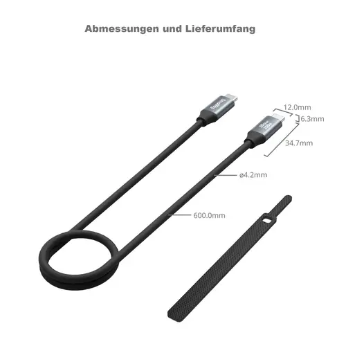 Hauptmerkmale• Hochgeschwindigkeitsdatenübertragungs- und Schnellladekabel unterstützt 20 Gbit/s-Datenübertragung und 100 W Stromversorgung.• Aus Silikon gefertigt, um ein weiches und hautfreundliches Gefühl zu vermitteln und gleichzeitig die Flexibilität des Kabels zu gewährleisten.• Verfügt über Anschlüsse aus Aluminiumlegierung für robuste Haltbarkeit.• Wird zur praktischen Aufbewahrung mit einem Kabelbinder geliefert.
