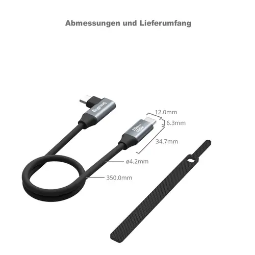 Hauptmerkmale• Hochgeschwindigkeitsdatenübertragungs- und Schnellladekabel unterstützt 20 Gbit/s-Datenübertragung und 100 W Stromversorgung.• Aus Silikon gefertigt, um ein weiches und hautfreundliches Gefühl zu vermitteln und gleichzeitig die Flexibilität des Kabels zu gewährleisten.• Verfügt über Anschlüsse aus Aluminiumlegierung für robuste Haltbarkeit.• Wird zur praktischen Aufbewahrung mit einem Kabelbinder geliefert.