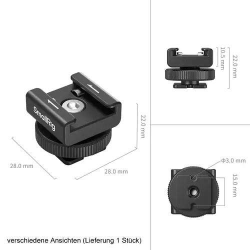 3. Der abnehmbare Blitzschuh bietet an der Basis vielseitige Befestigungsmöglichkeiten.