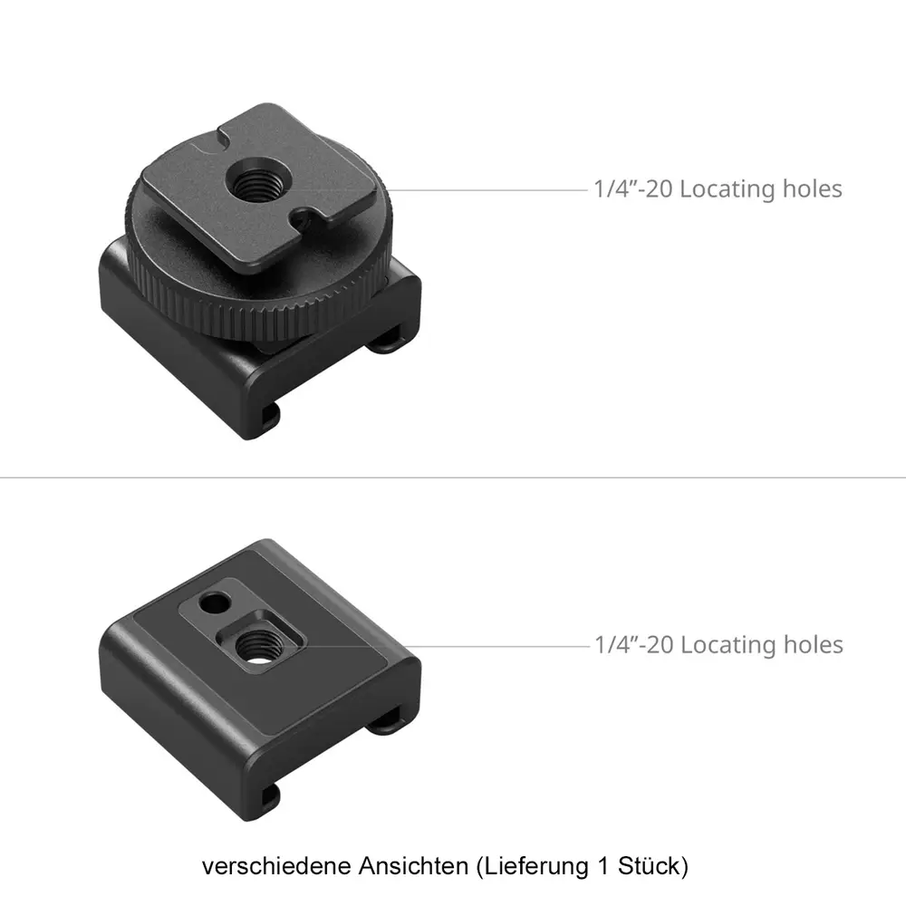 Zusätzlich verfügt die Unterseite der Blitzschuhhalterung über ein 1/4"-20 Positionierungsloch, das eine nahtlose Befestigung an verschiedenen Ständern ermöglicht. Diese Mikrofonhalterung ist präzise CNC-gefräst, um dauerhafte Stärke und Haltbarkeit zu gewährleisten.
