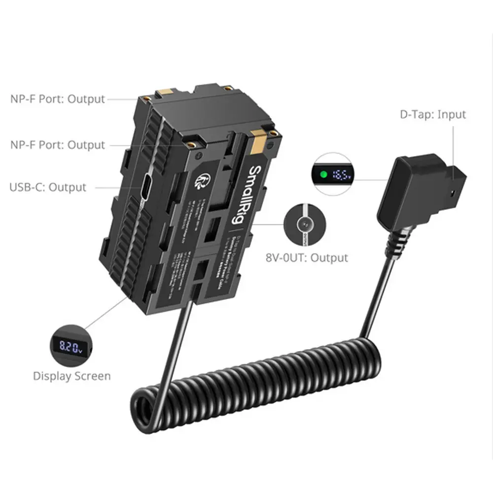 SmallRig 4884 D-Tap multifunktionales NP-F Dummy-Batterie-Stromkabel
