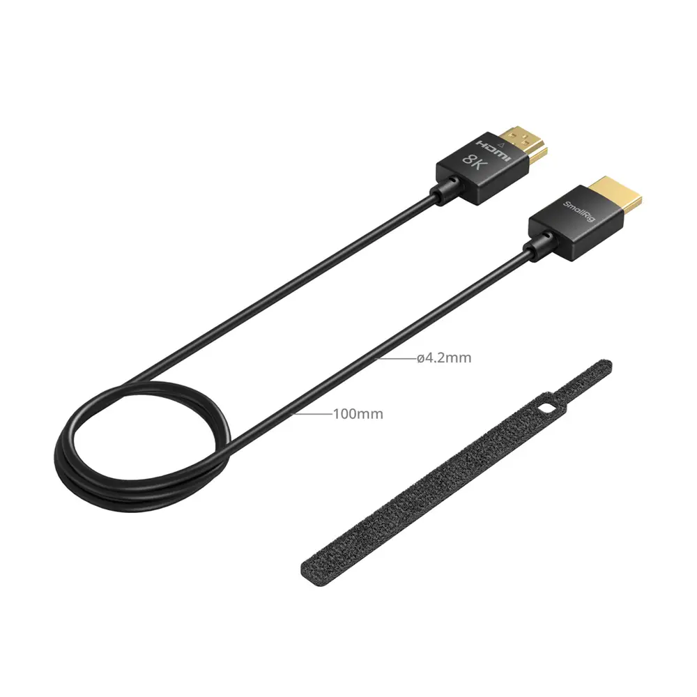 SmallRig 8K HDMI Datenkabel (A auf A) (100cm) 5086 ist ein hochwertiges HDMI-Kabel, das speziell für Ihr Kamera-Rig entwickelt wurde. Es ist kompatibel mit DSLR, Monitoren, drahtlosen Videosendern und -empfängern und anderen Geräten mit HDMI-Anschlüssen in voller Größe. Es ist die HDMI 2.1 Version und unterstützt Auflösungen bis zu 8K@60HZ und ist rückwärtskompatibel. Low-Profile-Anschlüsse blockieren nicht die benachbarten Anschlüsse. Es ist ein perfektes HDMI-Kabel für Ihr Kamera-Rig mit 100 cm Kabellänge. Der beiliegende Kabelbinder für das Kabelmanagement hilft Ihnen, Ihr Rig ordentlich zu halten.