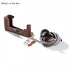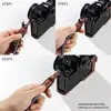 Die Tasche wird mit einer 1/4"-20 Rändelschraube an der Unterseite sicher an der Kamera befestigt und erfordert kein zusätzliches Werkzeug. Wichtig ist, dass alle Anschlüsse und Tasten der Kamera, einschließlich des Batteriefachs, der Fokussteuerung und des Kartensteckplatzes, frei zugänglich sind. Der robuste Aluminiumrahmen sorgt für einen perfekten Sitz und schützt vor Stößen.