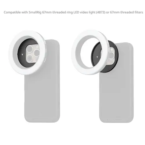 Der SmallRig FilMov Filteradapter mit 67-mm-Gewinde für das iPhone 16 der Serie 5173 wurde speziell für die iPhone 16 Pro und 16 Pro Max Telefongehäuse entwickelt. Er ermöglicht die direkte Montage von 67-mm-Gewindefiltern und der SmallRig 67-mm-Gewindering-LED-Videolampe (ID 4873) und verhindert effektiv Vignettierungen, die durch das Stapeln von Filteradaptern verursacht werden. In Verbindung mit dem Gewinde-zu-Magnet-Adapter aus dem SmallRig-Filterkit ermöglicht er außerdem die universelle Kompatibilität mit magnetischen 67-mm-Filtern und erleichtert so die nahtlose Installation und den Austausch von Filtern.