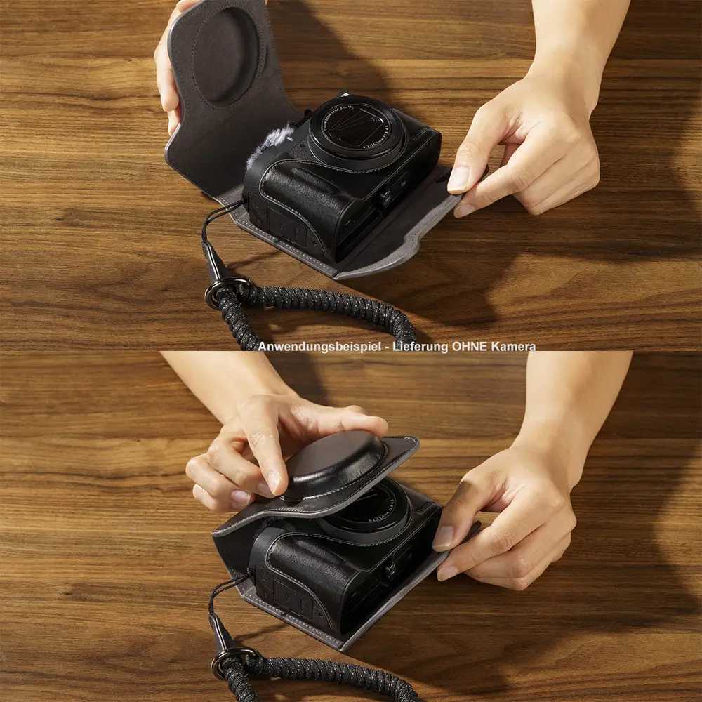 • Innen mit Wildleder gefüttert: Das weiche Wildlederfutter schützt das Kameragehäuse und das Objektiv vor Kratzern.