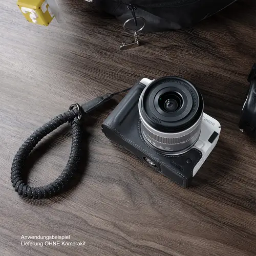 Zum Lieferumfang gehört auch ein elegantes, gewebtes Armband (ID 5055), das sich in der Länge verstellen lässt, um es an verschiedene Handgelenkgrößen anzupassen. Der aus Nylon und echtem Leder gefertigte Gurt trägt bis zu 10 kg und ermöglicht ein bequemes und sicheres Tragen Ihrer Ausrüstung.
