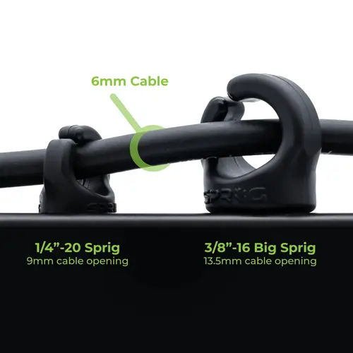 Sprig im Kit wird aus einem starken und flexiblen Material spritzgegossen, um einen Kabelhaken zu schaffen, der am Set standhält und unter Druck nicht bricht.