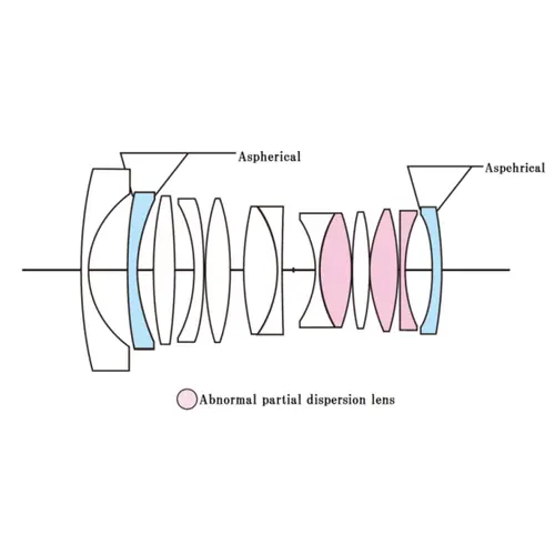 Neben der Verwendung von zwei Linsenelementen mit asphärischen Oberflächen kommt auch ein Floating Element zum Einsatz, um eine hervorragende Abbildungsqualität über den gesamten Fokussierungsbereich von der Nahgrenze bis unendlich zu gewährleisten.