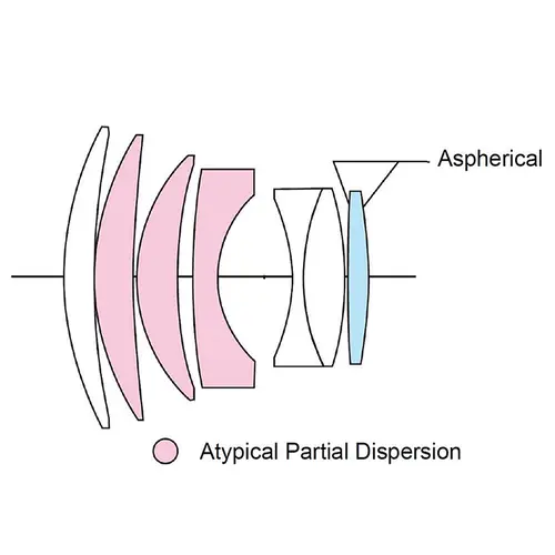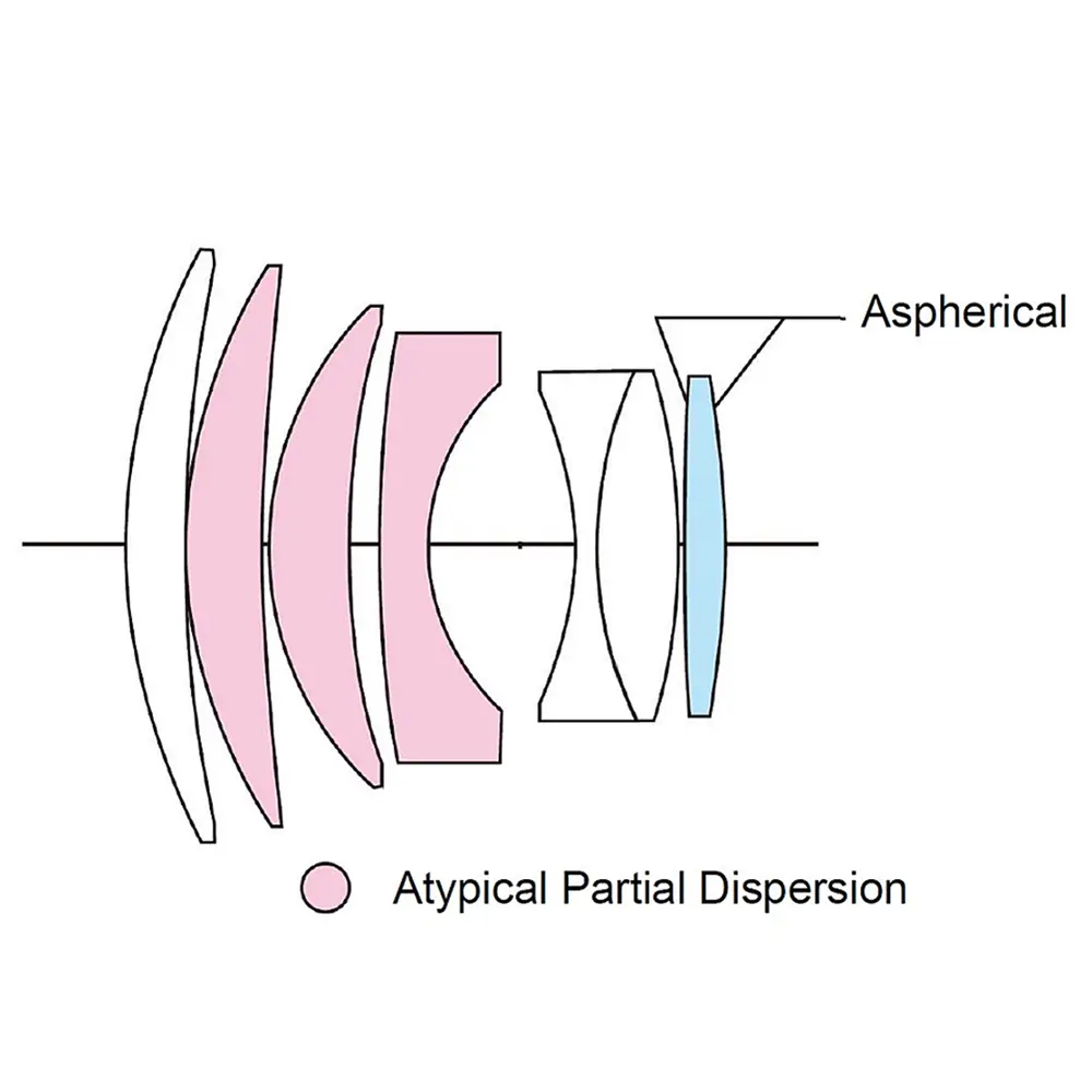 Optischer Aufbau: 7 Linsen in 6 Gruppen