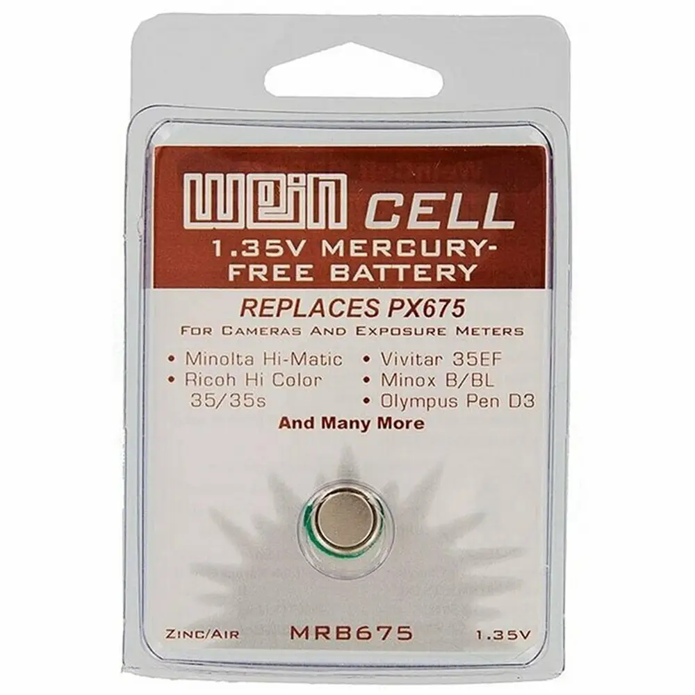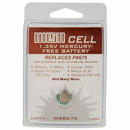 Die Wein Cell MRB675 ist eine 1,35 Volt quecksilberfreie Batterie. Sie wurde entwickelt, um die Batterien Mercuric Oxide PX675 (Quecksilber) und LR44 zu ersetzen und wird häufig in Kameras und Belichtungsmessern verwendet