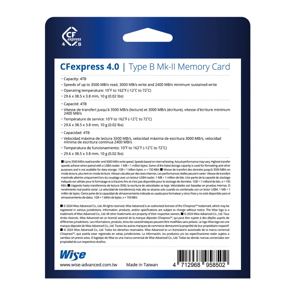 Wise 4 TB CFexpress 4.0 Type B Mk-II Speicherkarte