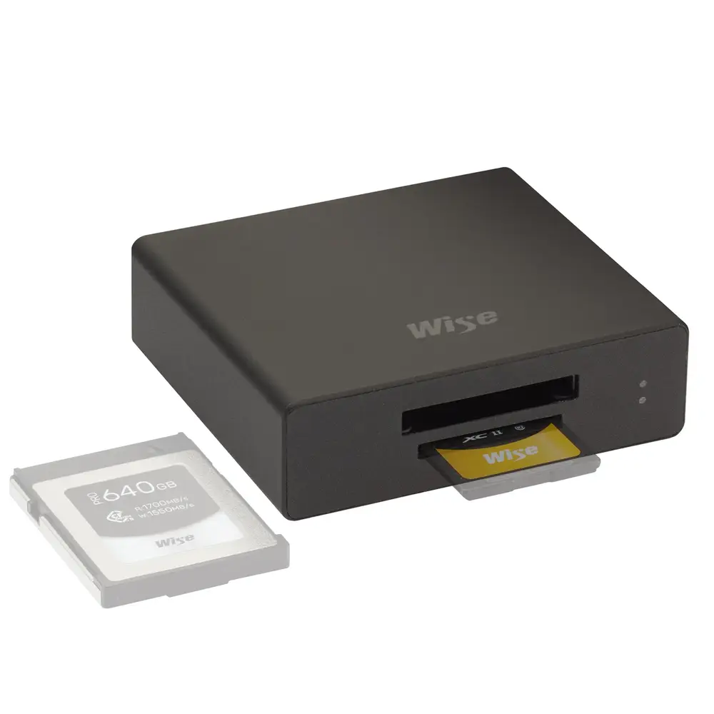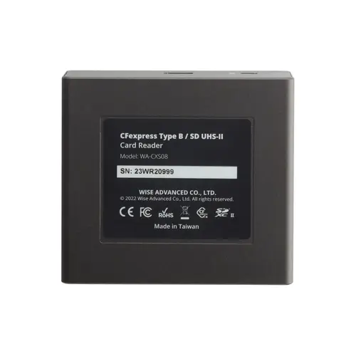 Der Wise CFexpress Type B / SD Card Reader besitzt ein thermal-beschichtetes Aluminiumgehäuse, das die Hitzeableitung effizienter gestaltet. Im Vergleich zum Vorgängermodell ist der Schreibschutzschalter nun auf der Rückseite angebracht, was zu einem schlankeren Design führt. Und zu guter Letzt hat die proprietäre Sleep-Mode-Software ein Upgrade erfahren und schützt Ihre Speicherkarten noch besser, wenn sie gerade nicht in Benutzung sind.