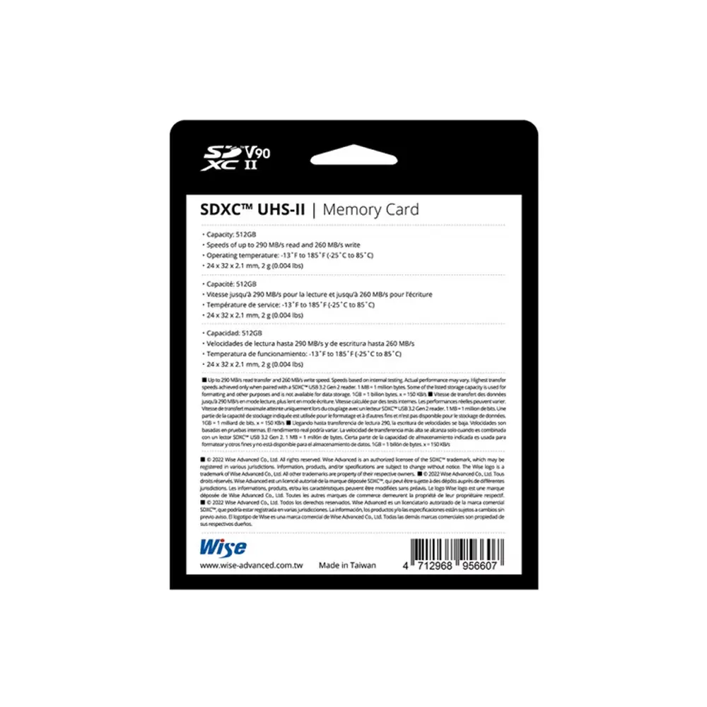 Wise SDXC UHS-II V90 512 GB Speicherkarte