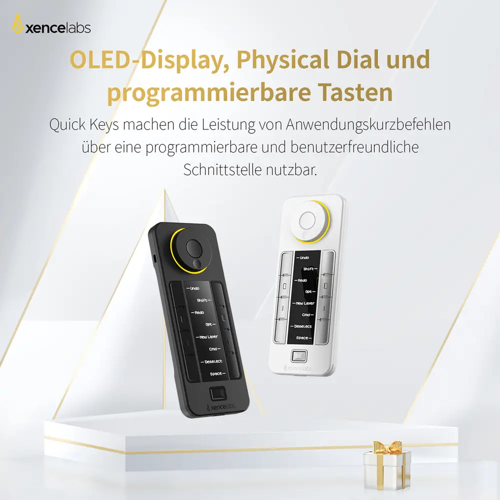 Die Shortcut-Fernbedienung mit OLED-Display ist die erste ihrer Art auf dem Markt. Die OLED-Anzeige zeigt Ihnen auf einen Blick die Zuordnung der einzelnen Tasten. Mit unserem herunterladbaren Treiber können Sie 40 Tastenkombinationen pro Anwendung anpassen.