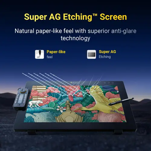 Das erste Pen Display mit integrierter Calman® Ready Firmware – vorkalibriert auf Hardware-Ebene. Die Oberfläche reduziert Blendung erheblich, ist optisch verklebt (keine Parallaxe) und bietet ein klares Bild ohne „Glitzereffekt“. Mit 93 % DCI-P3 und 99 % Adobe RGB Abdeckung sowie Unterstützung für sechs Farbräume. Validiert durch Pantone® & SkinTone™. 4K UHD IPS-Bildschirm mit 3840 x 2160 Auflösung und 1,07 Milliarden Farben.