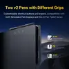 Die Oberfläche wurde sorgfältig gestaltet, um ein natürliches Stift-auf-Papier-Gefühl zu bieten. Zwei v2-Stifte sind enthalten: der 3-Tasten-Stift v2 + Radierer und der Dünne Stift v2 + Radierer. Zwei Arten von Spitzen (Standard und Filz) sorgen für ein traditionelles Zeichengefühl. Die Druckkurve wurde mit Künstlerfeedback fein abgestimmt und ist vollständig anpassbar.