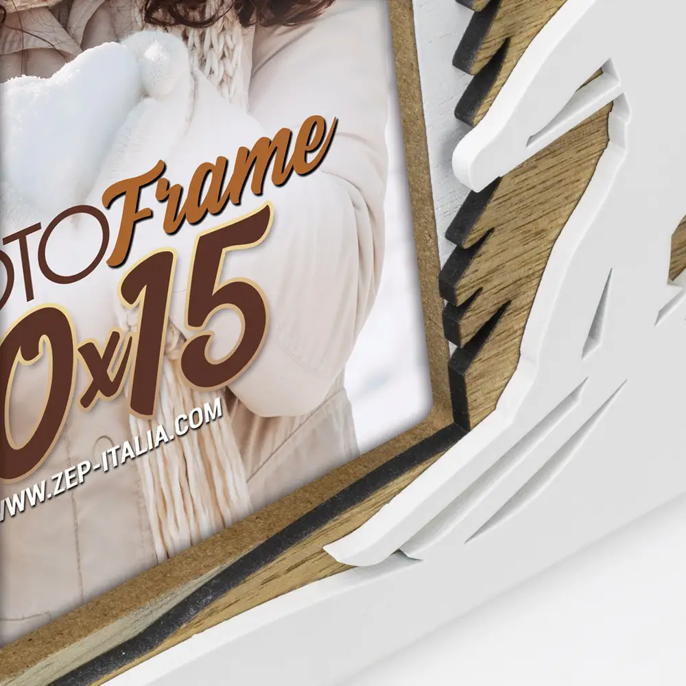 BezeichnungZEP Cervinia 10x15 cm hoch, braun-weiß, Holzrahmen Thema Skifahren, zum Stellen