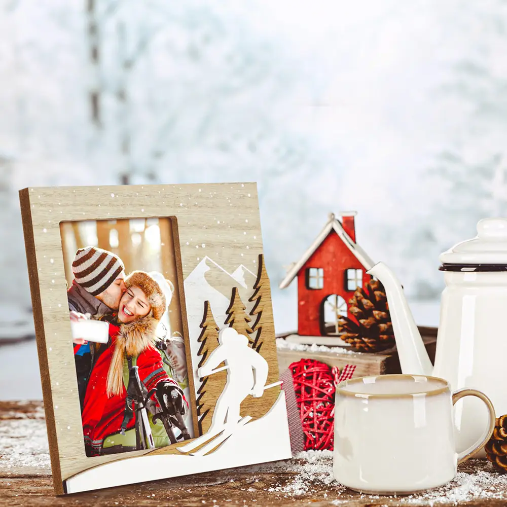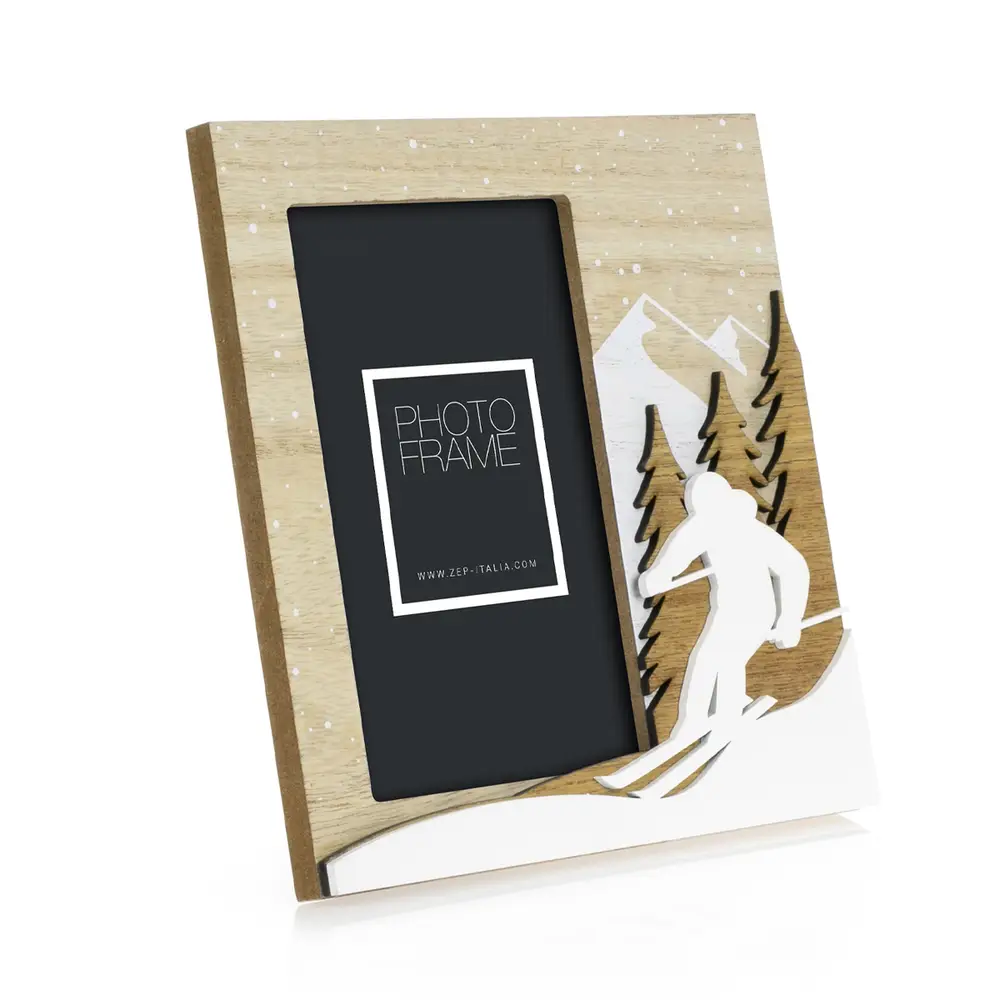 ZEP Cervinia 10x15 cm hoch, braun-weiß, Holzrahmen Thema Skifahren, zum Stellen