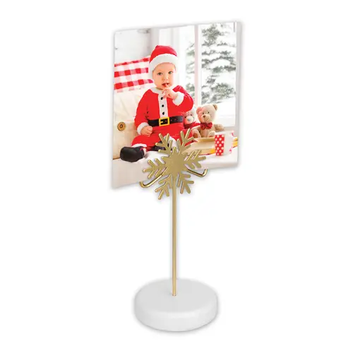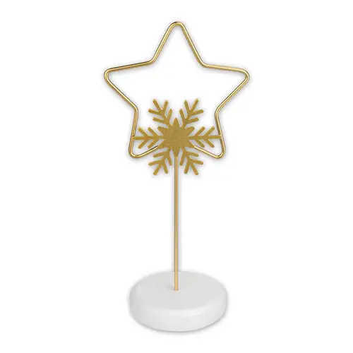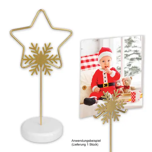 EIGENSCHAFTENKategorie: WeihnachtsdekorationFarbe: Weiß/GoldBesonderheit: Schneeflockenförmiger FotoclipVerpackung: Schachtel