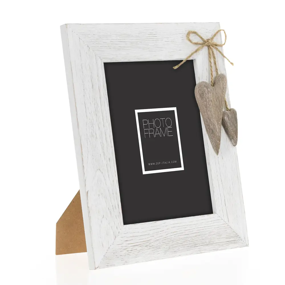 EIGENSCHAFTENFotogröße: 13x18 cmFarbe: Weiß/BraunRückseite: MDFBesonderheit: Klassisches Profil mit Vintage-Effekt und dekorativen Herzen