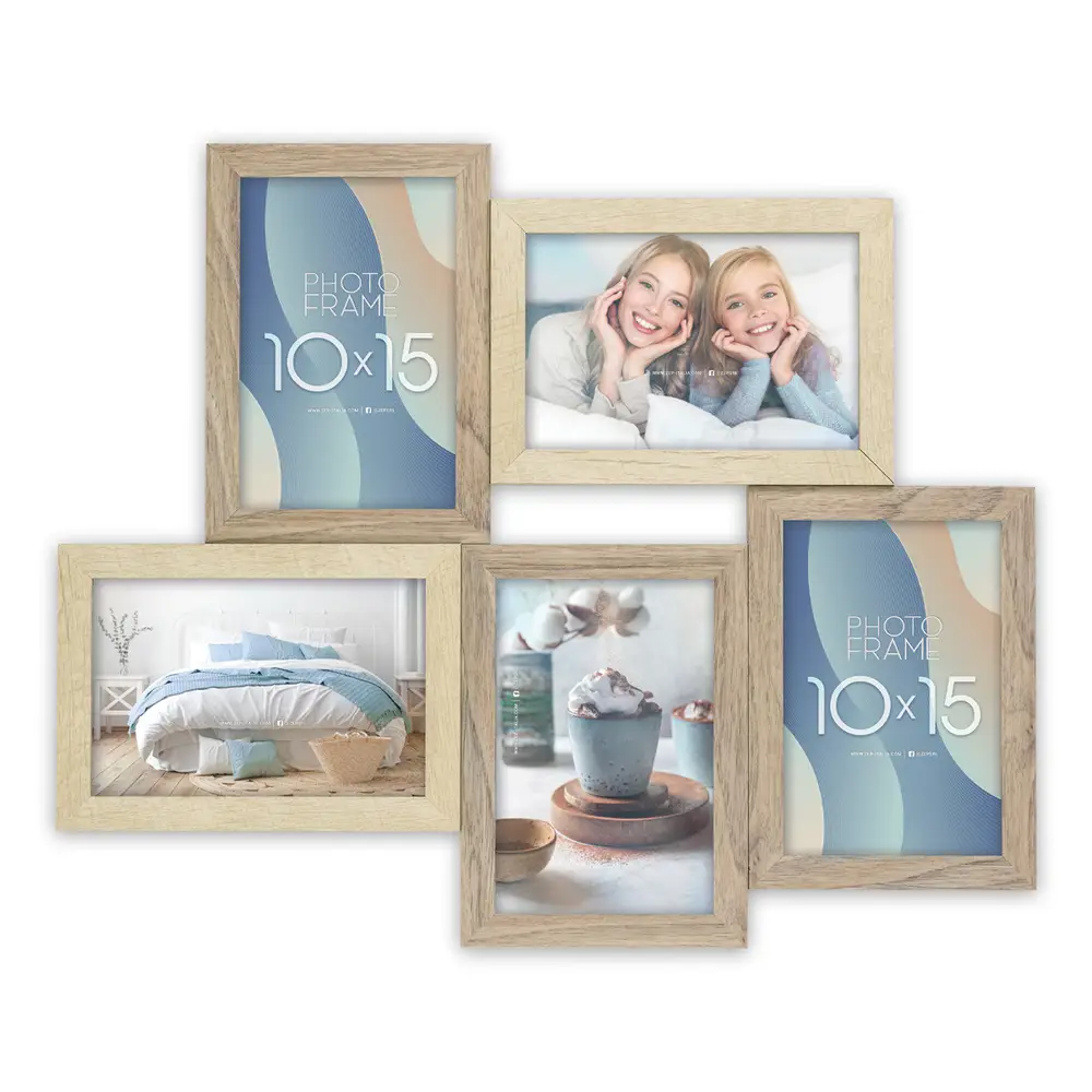 Galerierahmen, Farbe braun und beige, für 5 Fotos in 10x15 cm, bestehend aus horizontalen und vertikalen Rahmen, geeignet für Heim und Büro.