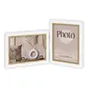 Doppel-Holzrahmen weiß mit Innenrahmen im Naturholz-Look für Fotos 13x18 cm hoch und quer, mit Scharnieren verbunden, Gesamtmaß 36x20,5 cm, zum Stellen