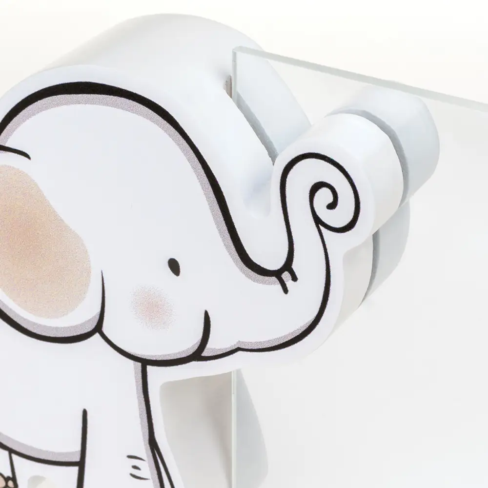 Rahmen aus Holz und Acryl, weiß, 3D-Elefantenform.