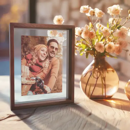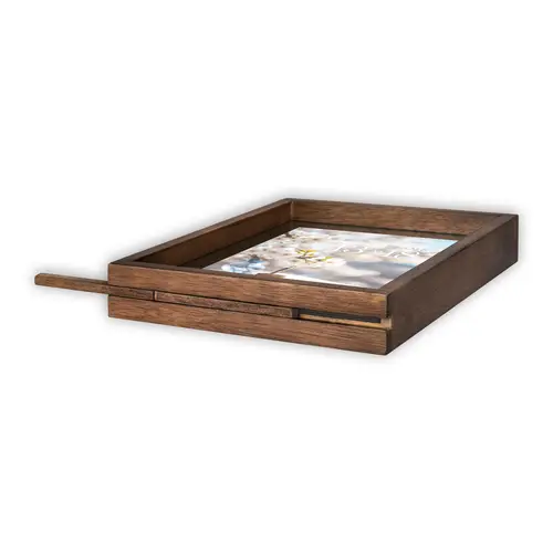 EIGENSCHAFTEN:Fotogröße: 13x18 cmFarbe: DunkelbraunRahmenstärke: 4 cmPassepartoutstärke: 1,2 cmRückseite: MDFBesonderheit: klassisches quadratisches ProfilVerpackung: Karton
