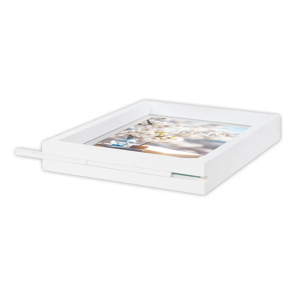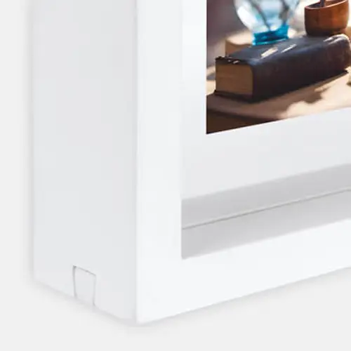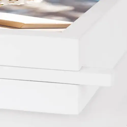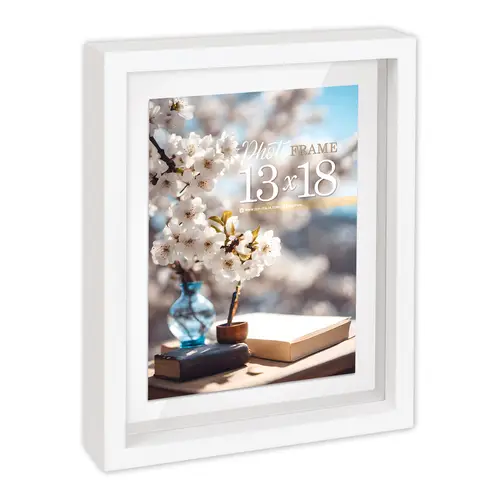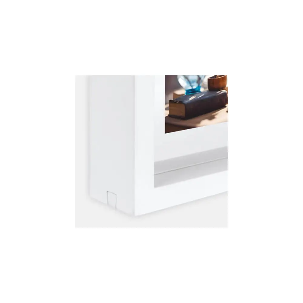 EIGENSCHAFTEN:Fotogröße: 13x18 cmFarbe: WeißRahmenstärke: 4 cmPassepartoutstärke: 1,2 cmRückseite: MDFBesonderheit: klassisches quadratisches ProfilVerpackung: Karton