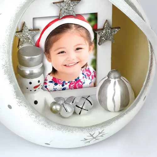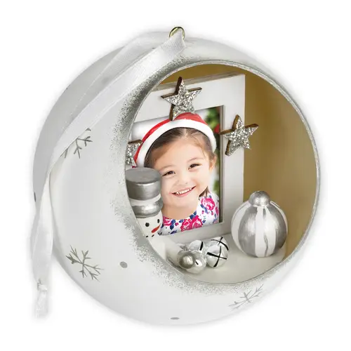 ZEP Winterfotokugel Harlot weiß mit Holzbilderrahmen 3,5x4,5 cm, zum Hängen