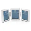 Minirahmen mit schmaler Rundleiste versilbert und anlaufgeschützt, Klarglas und dunkelblauer/schwarzer Velour-Rückwand, Klapprahmen für 3 Fotos 3,5x4,5 cm Passbildformat.