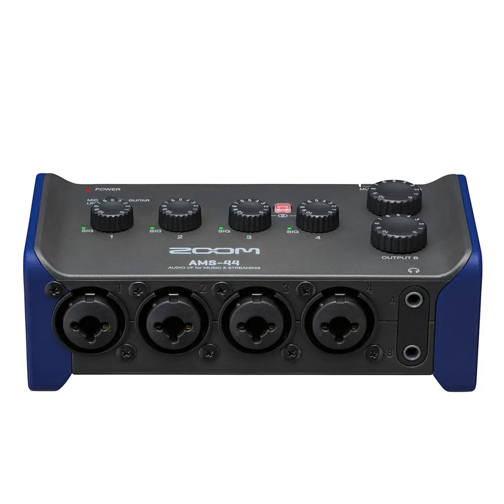 Egal, ob Aufnahme oder Streaming – mit dem AMS-44 bleibt Ihr Setup immer übersichtlich. Das Interface bietet vier XLR/TRS-Combo-Eingänge mit leistungsstarken und rauscharmen Zoom-Vorverstärkern. Darüber hinaus stehen zwei Kopfhörerausgänge sowie zwei TRS-Klinkenausgänge zum Anschluss externer Monitore zur Verfügung.